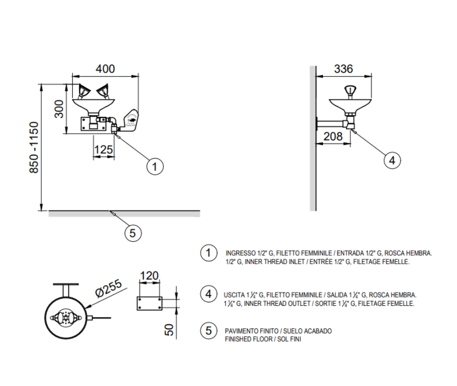 Аварийный фонтан настенный нерж. сталь BOCCHISF SC300 зеленый
