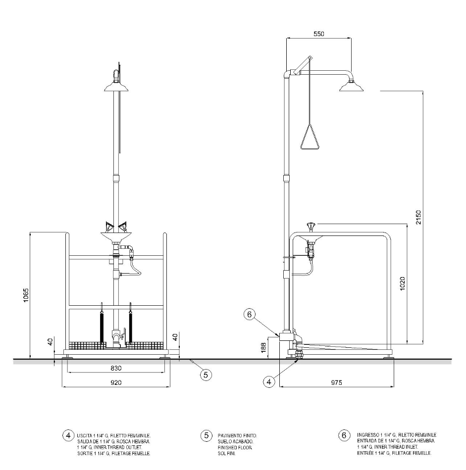 Комбинированная система душ и умывальник для промывки глаз с газированной водой.