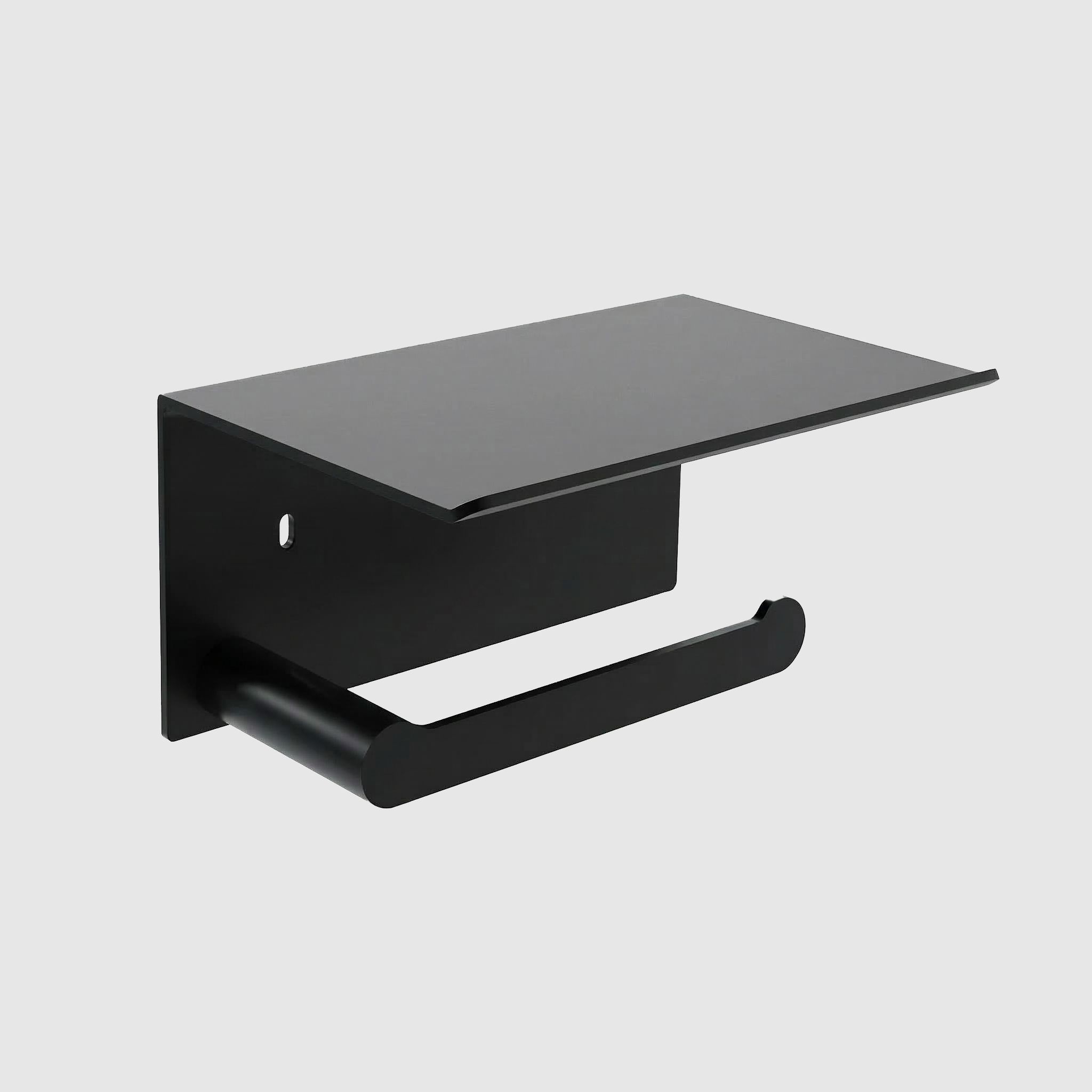 Держатель для туалетной бумаги с полочкой для мобильного телефона Verona черный 16876.N выполнен из нержавеющей стали AISI 304 с матовым черным покрытием, что обеспечивает высокую надежность и прекрасный внешний вид.