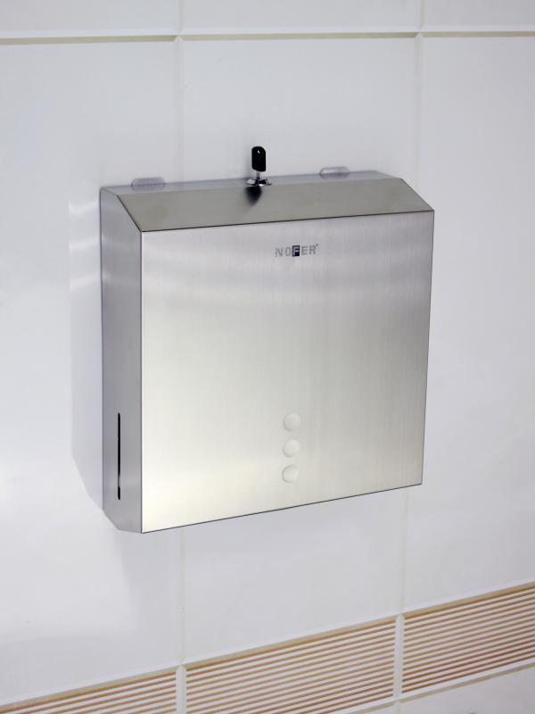 Диспенсер для бумажных полотенец NOFER из нержавеющей стали, глянцевая. Фронтальная загрузка.