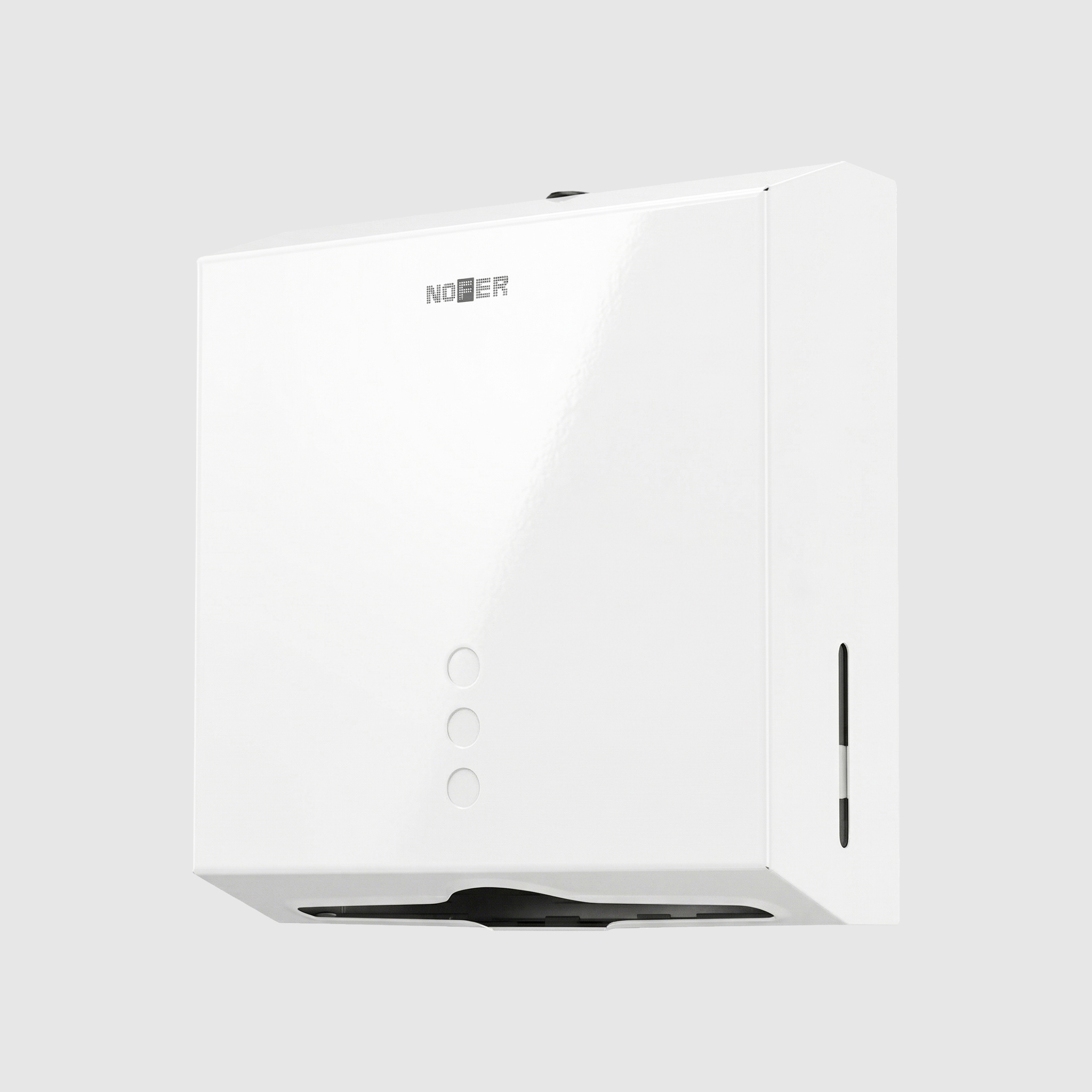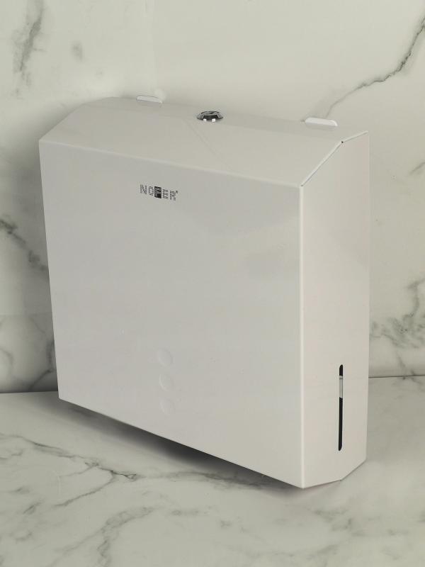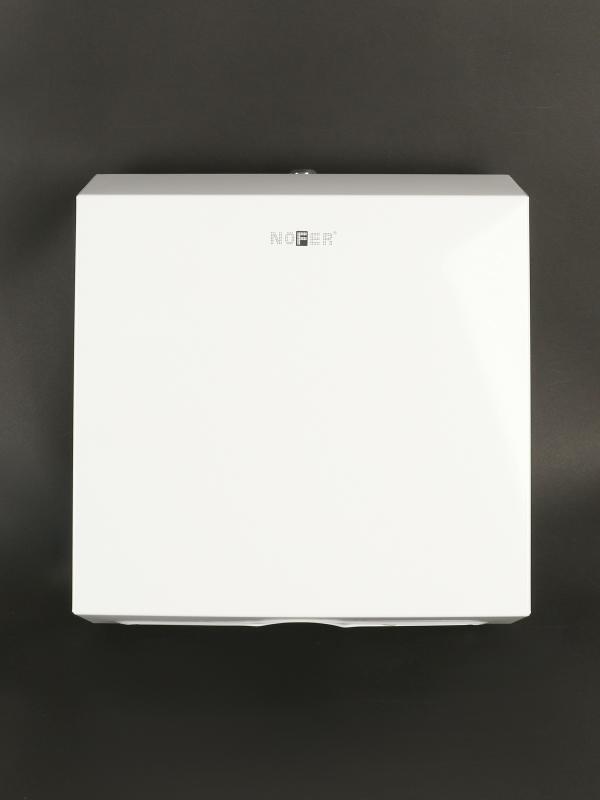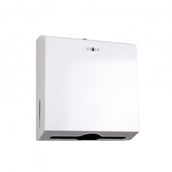 Диспенсер для бумажных полотенец NOFER из нержавеющей стали, белого цвета. Фронтальная загрузка.