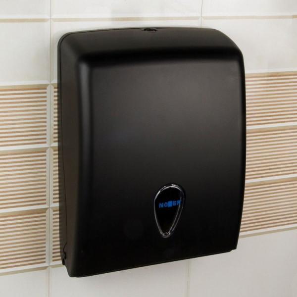Диспенсер для бумажных полотенец пластмассовый черный изготовлен из ABS пластика, белого цвета, благодаря которому удобно контролировать остаток бумажных полотенец. В комплекте с диспенсером поставляется универсальный ключ, который подходит на все пластиковые диспенсеры NOFER, а также на пластиковые дозаторы для мыла.