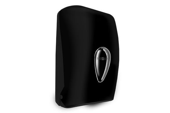"Черный диспенсер для листовой туалетной бумаги 05118.N шириной не более 140 мм, прекрасно впишется в интерьер, где нет много свободного пространства"