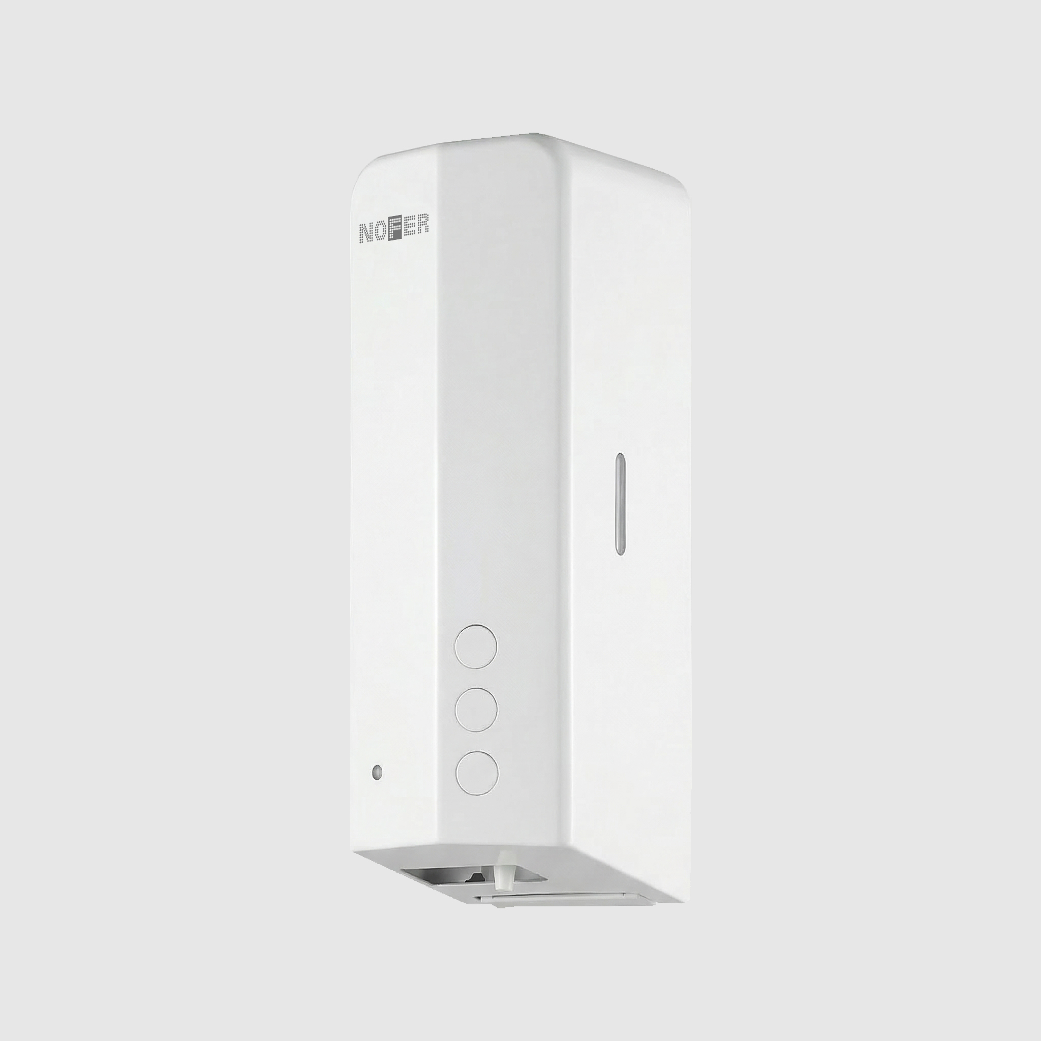 Nofer 03039.W дозатор для мыла автоматический, сенсорный из нержавеющей стали AISI 304, белый. Дозатор работает от 6 батареек АА, также данный дозатор может работать от электрической сети, для этого потребуется докупить электрический адаптер. Дозатор будет выделять 3-5 мл жидкого мыла за 1 цикл работы. Для качественной работы устройства, необходимо расположить его на уровне не менее 18-20 см от поверхности. Корпус дозатора считается антивандальным, поскольку изготовлен из нержавеющей стали толщиной 1,0 мм и не имеет острых углов. Также устройство поставляется в комплекте с универсальным ключом и монтажным набором, батарейки с дозатором не поставляются. Рекомендуется использование расходных материалов средней вязкости, уровень РН которых находится в диапазоне нейтральной от 6 до 8. Также данный диспенсер можно использовать совместно с мылом-пеной. Для этого потребуется докупить специальный клапан.