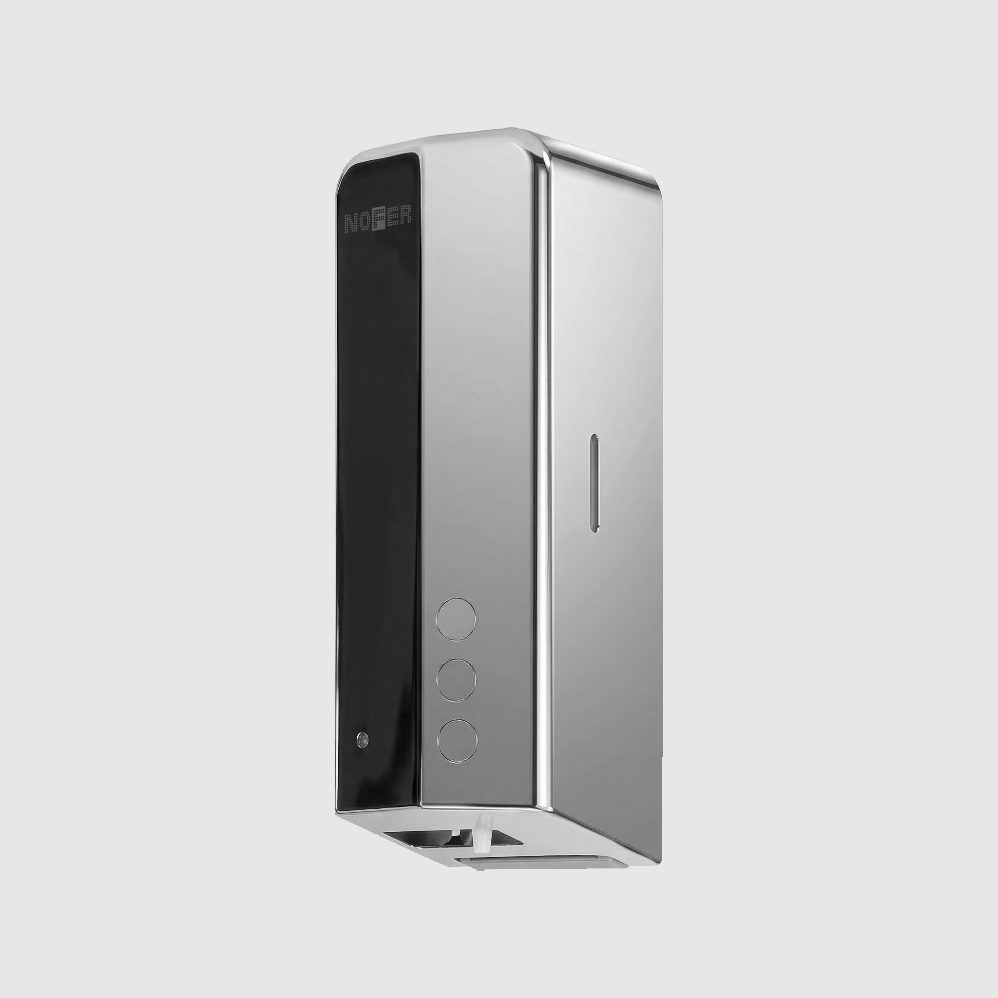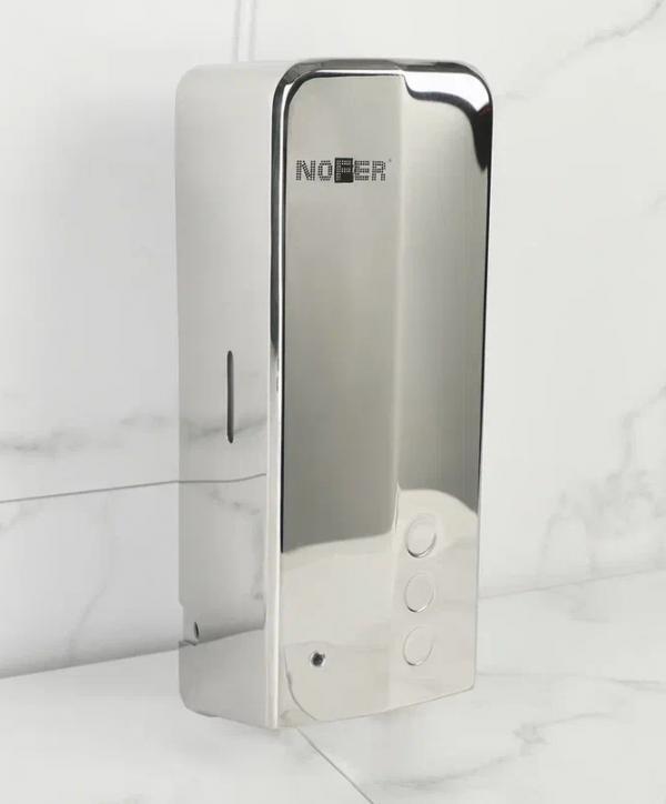 Nofer 03039.B дозатор для мыла автоматический, сенсорный из нержавеющей стали AISI 304, глянцевый. Дозатор работает от 6 батареек АА, также данный дозатор может работать от электрической сети, для этого потребуется докупить электрический адаптер. Дозатор будет выделять 0,8-1 мл жидкого мыла за 1 цикл работы. Для качественной работы устройства, необходимо расположить его на уровне не менее 20 см от поверхности. Корпус дозатора считается антивандальным, поскольку изготовлен из нержавеющей стали толщиной 1,0 мм и не имеет острых углов. Также устройство поставляется в комплекте с универсальным ключом и монтажным набором, батарейки с дозатором не поставляются. Рекомендуется использование расходных материалов средней вязкости, уровень РН которых находится в диапазоне нейтральной от 6 до 8. Также данный диспенсер можно использовать совместно с мылом-пеной. Для этого потребуется докупить специальный клапан.