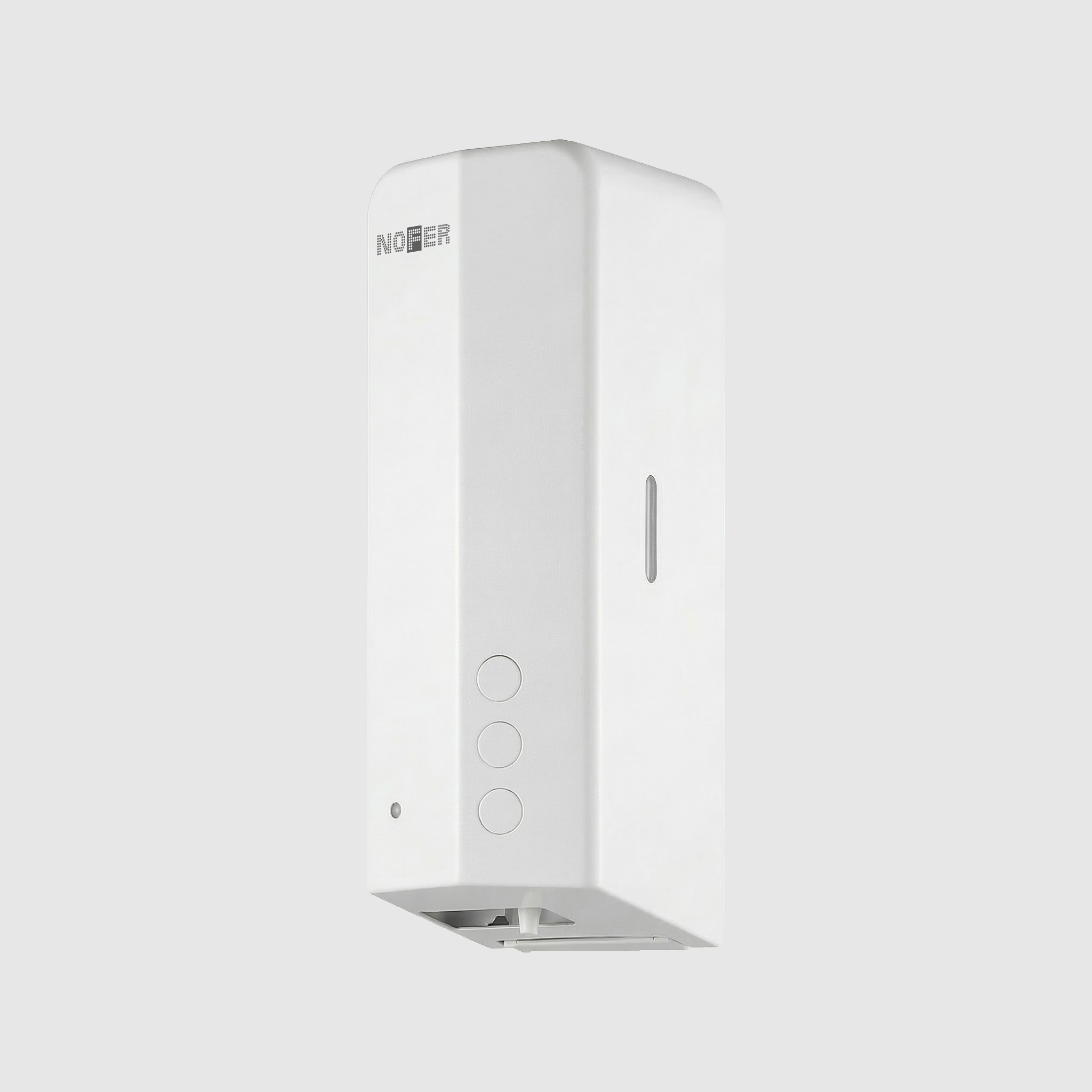 Автоматический настенный дозатор для жидкого мыла NOFER с инфракрасным датчиком из ABS-пластика белого цвета. Имеет окошко для просмотра содержимого и защитный замок. Подходит для общественных мест с высокой частотой использования. Работает от 6 батареек АА, есть светодиод, указывающий на необходимость замены батареек. Имеется возможность подключения к сети с помощью адаптера (NOFER 90806.TR), не входит в комплект. Для подачи мыла -пены можно установить клапан для мыла-пены (NOFER 90807.FP) для использования антисептика на спиртовой основе для подачи спрея можно установить клапан (NOFER 90807.SP). Рекомендовано устанавливать на расстоянии не менее 20 см от поверхности столешницы.