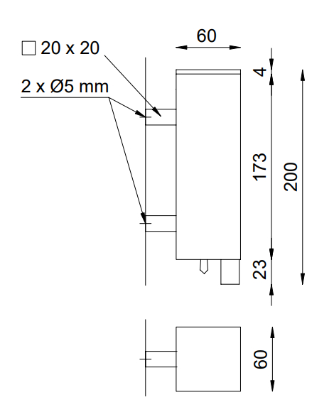 Габаритные размеры: 200х60х60 мм