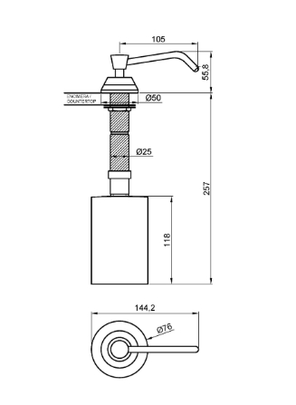 Габаритные размеры (кран/бак): 62x50x100 мм / 96 высота x Ø75 (мм)