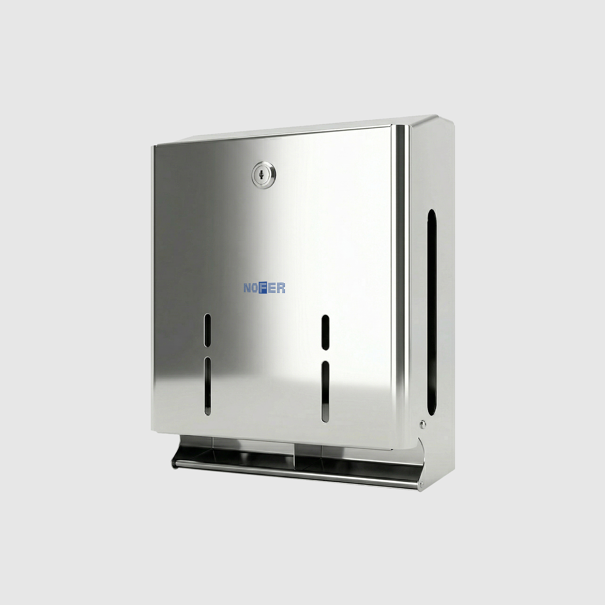 Диспенсер рулонной туалетной бумаги, выполнен из нержавеющей стали глянцевой имеет защитный ключ, окошко для контроля уровня бумаги внутри и фронтальную загрузку рулона бумаги. Держатель не имеет острых углов и сделан из нержавеющей стали особой марки AISI 304, что дает основание считать его в полной мере защищенным от вандализма. Расходные материалы, предназначенные для этого типа устройств - стандартная туалетная бумага 50-60 метров. Таким образом эту модель можно охарактеризовать, как диспенсер повышенного комфорта. Nofer 05105 спроектирован для мест с большой проходимостью. Гарантия от производителя на аппарат составляет 2 года!