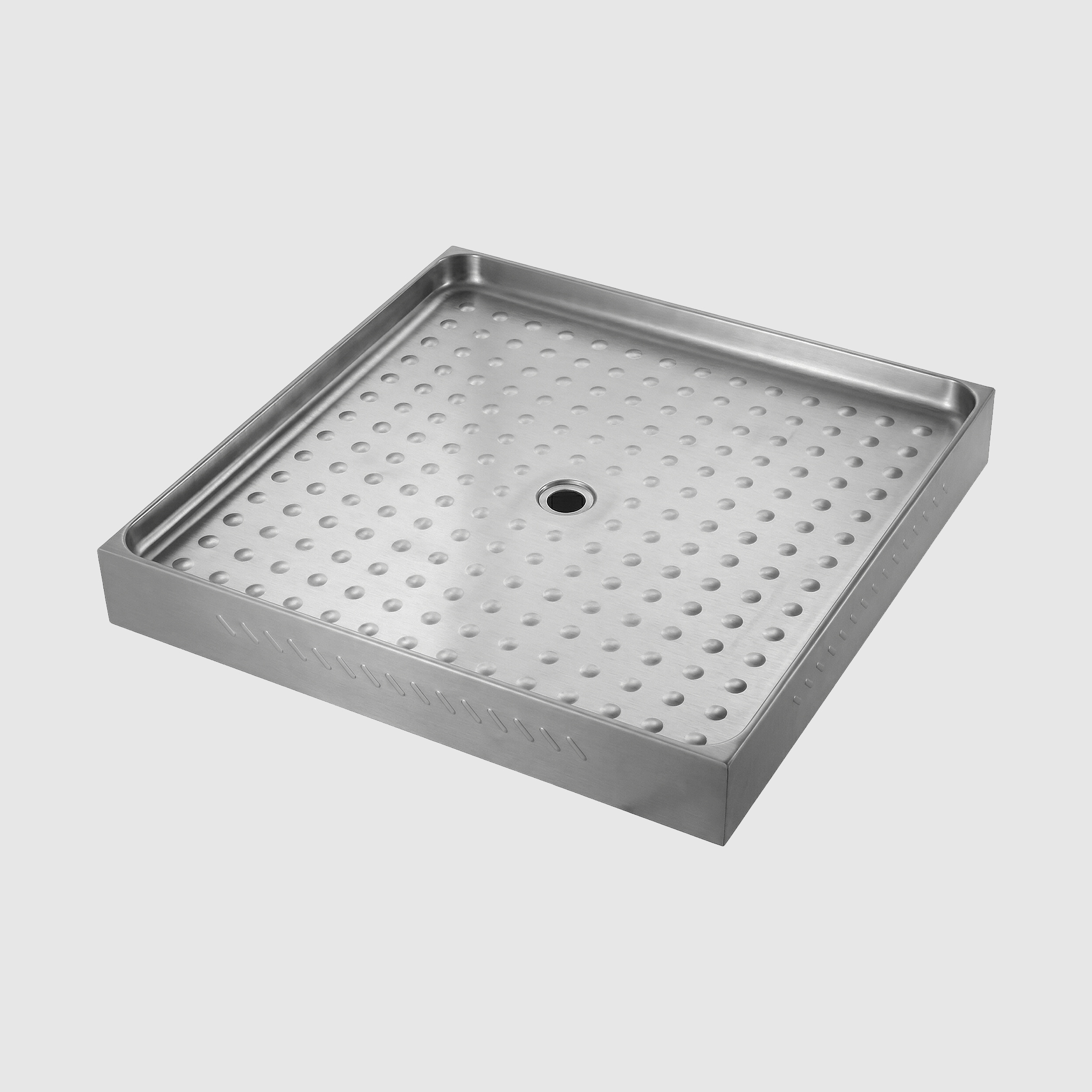 Поддон душевой металлический из особо вида нержавеющей стали AISI 304, которая отличается своей устойчивостью к коррозии и ржавчине производится на заводе Нофер в Барселоне.Антивандальный душевой поддон из нержавеющей стали выполнен без острых углов и сварных швов, поверхность полностью противоскользящая, стойкая к ржавчине и легкоочищаемая. Душевой поддон не имеет сварных швов, поэтому риск протечки снижается в 3 раза!
