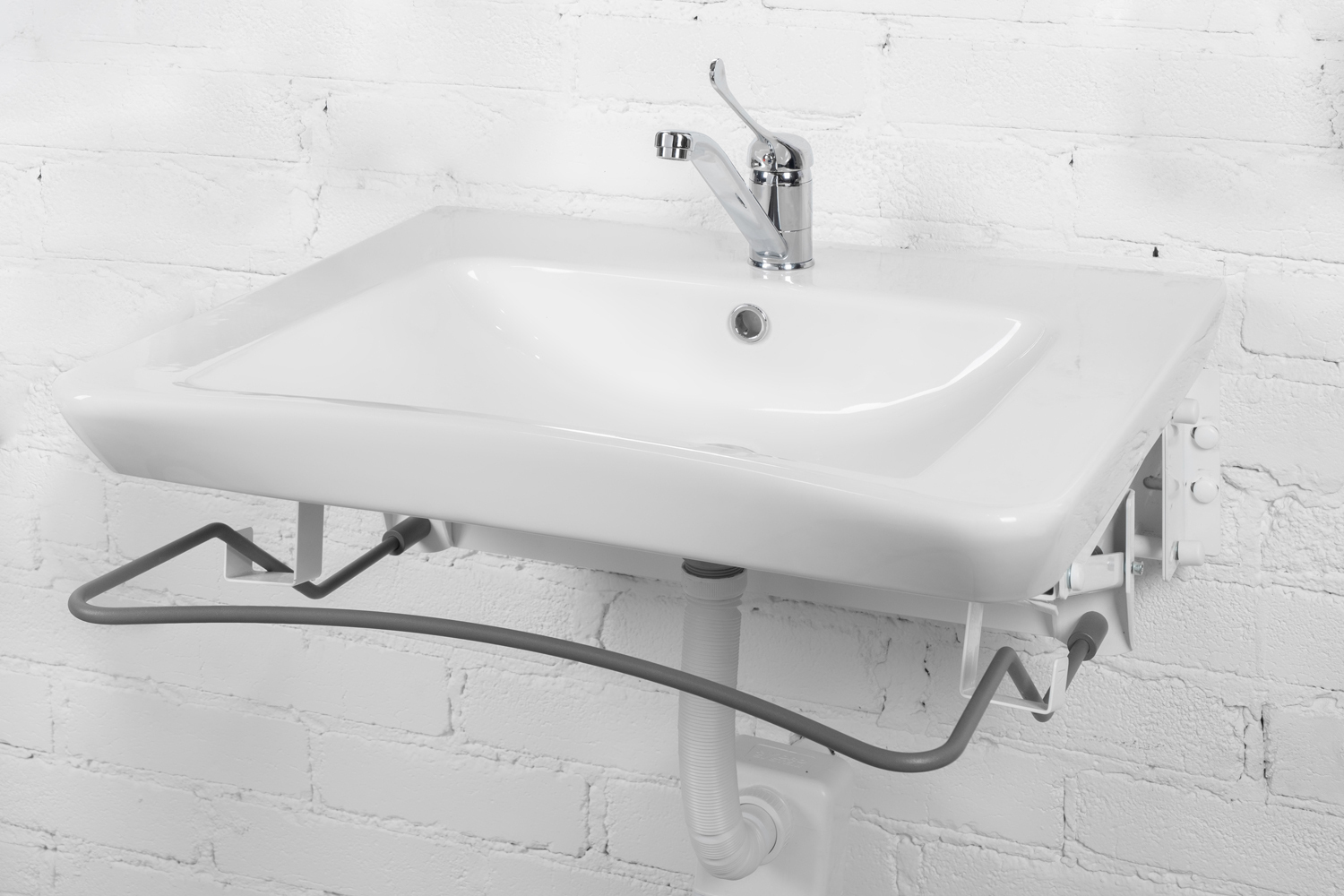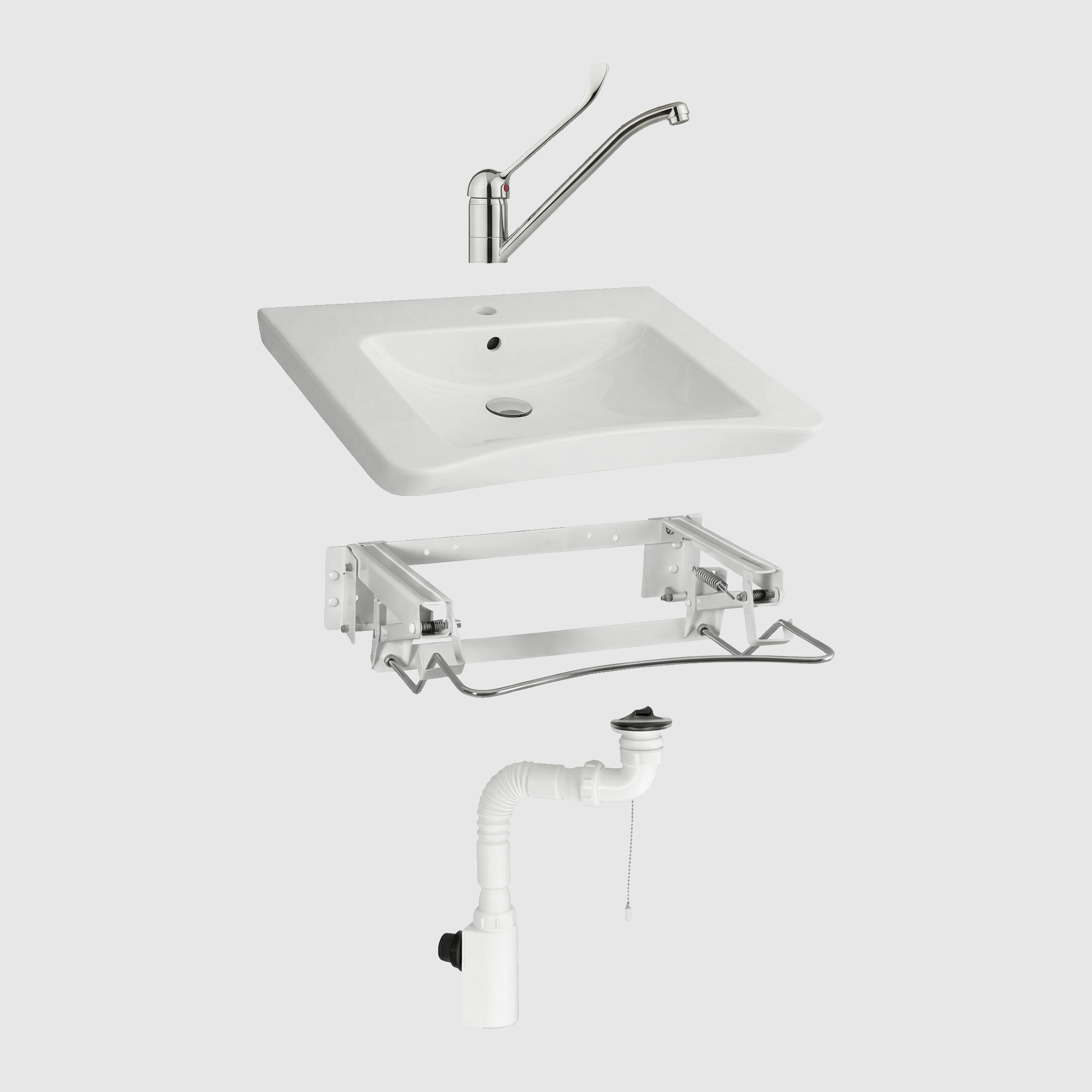 Комплект (Раковина МГН, пневматическое крепление, смеситель, сифон) NOFER H12 белый