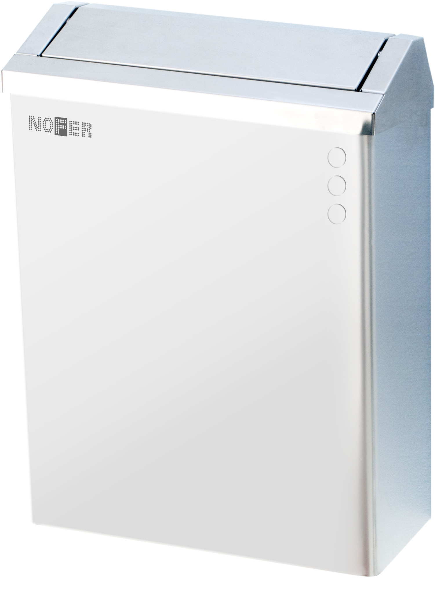 Контейнер для мусора белый настенный выполнен из нержавеющей стали может быть монтирован как на пол, как и на стену, имеются специальные зажимы для полиэтиленовых пакетов.