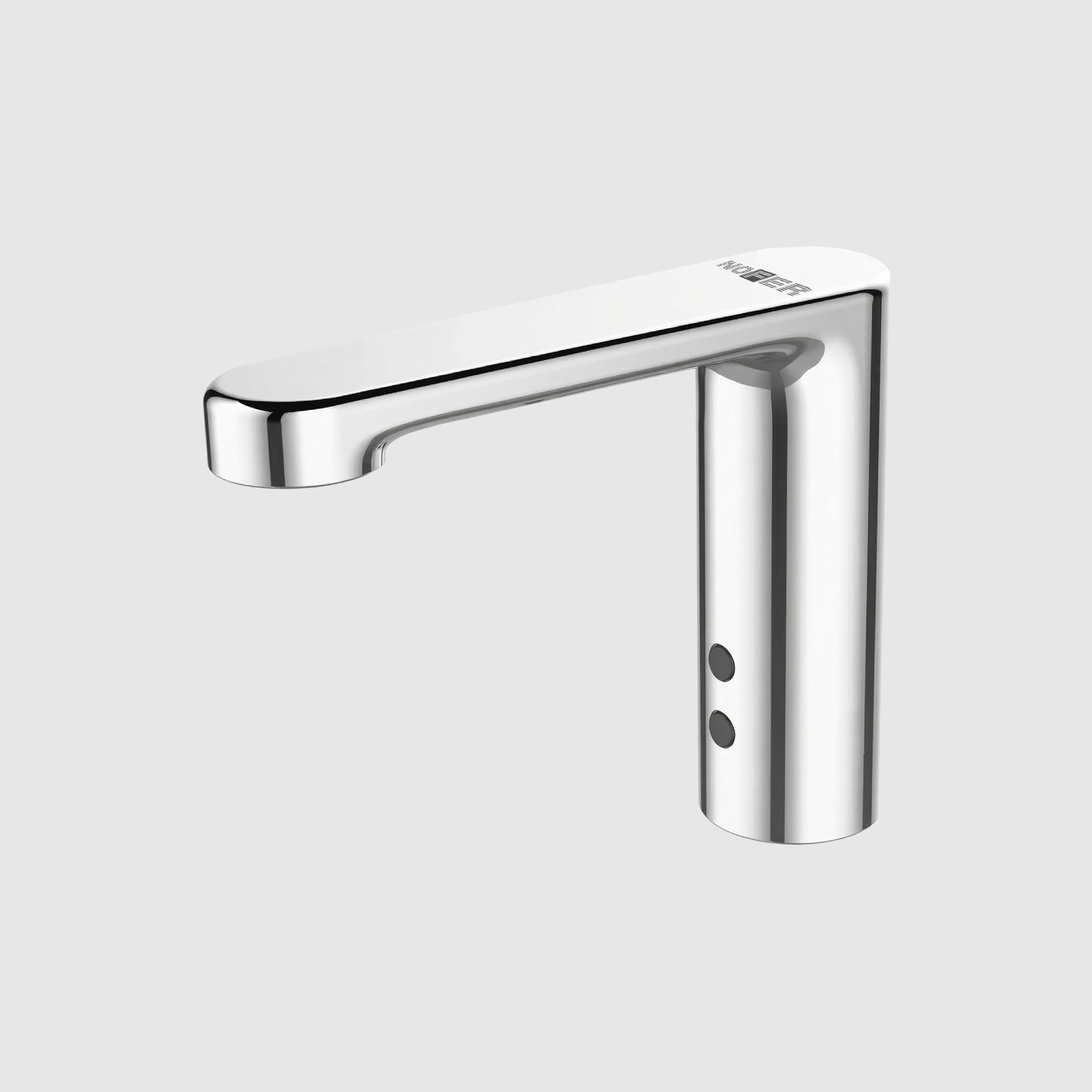 Автоматический смеситель для умывальника Установка на столешницу с автоматической системой активации через встроенный в нее инфракрасный датчик Работа от сети 220 В 50/60 Гц или от 4 батареек АА, обеспечивающих 6 В в случае сбоя питания. Расход 6 л / мин при давлении 3 бара Материал: хромированная латунь CW617N Размеры: 142 высота x 62 ширина x 183 глубина (мм)