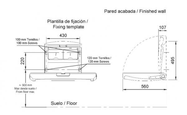 Пеленальный столик NOFER складной 09214.S. Предназначен для комнаты матери и ребенка в общественных местах. Столик компактный, складной, безопасный благодаря закругленным краям. Выполнен из нержавеющей стали AISI 304и высококачественного полиэтилена высокой плотности с антибактериальным покрытием. В части которая крепится к стене, имеет встроенные диспенсеры для бумажных полотенец или гигиенических салфеток или памперсов. Имеет ремень безопасности. Долговечный и устойчивый, максимальная нагрузка - 20 кг. Крепежные материалы в комплекте