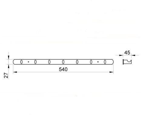 Настенная планка NOFER LINE с крючками, 7 шт. Выполнена из материала Zamac, сплав металлов (цинк, алюминий, магний, медь).