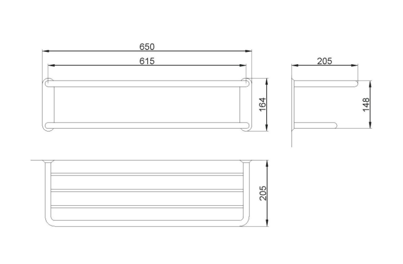 Габаритные размеры: 164 В x 650 Ш x 205 Г (мм)