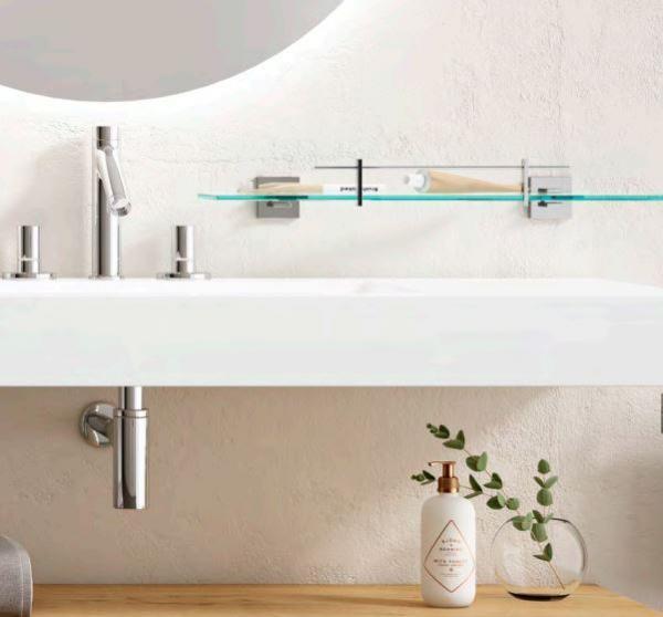Полка для ванной комнаты BARCELONA выполнена из глянцевой нержавеющей стали AISI 304 и закаленного стекла. Долговечная и устойчивая к коррозии. Подходит для общественных помещений и домашнего использования. Стильный угловатый дизайн впишется в любой интерьер.