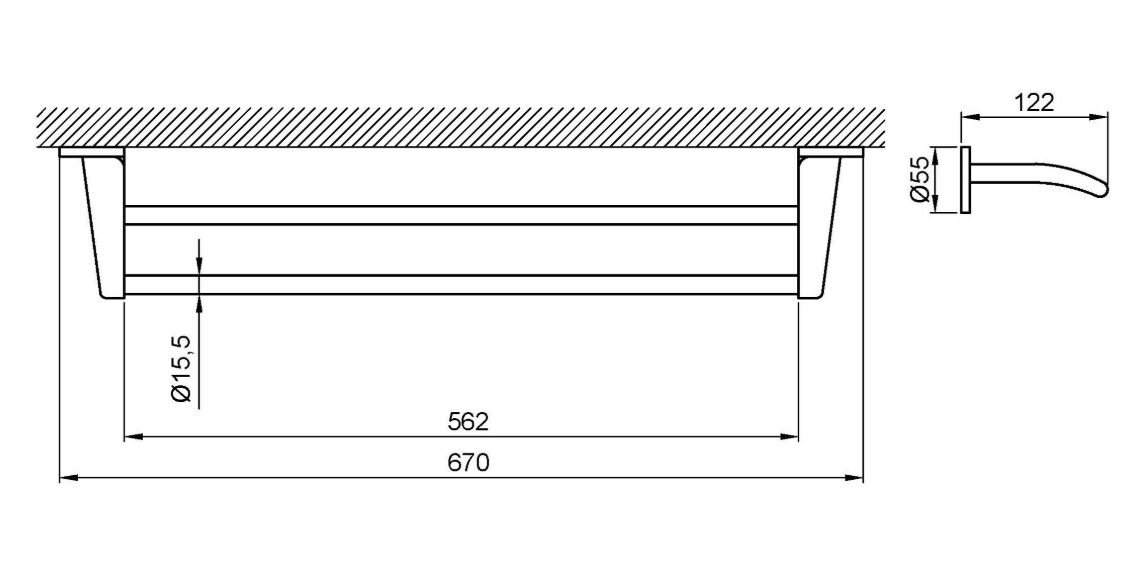 Полотенцедержатель двойной 600 мм Hotel из специального материала Zamac (сплав цинка, алюминия, меди).