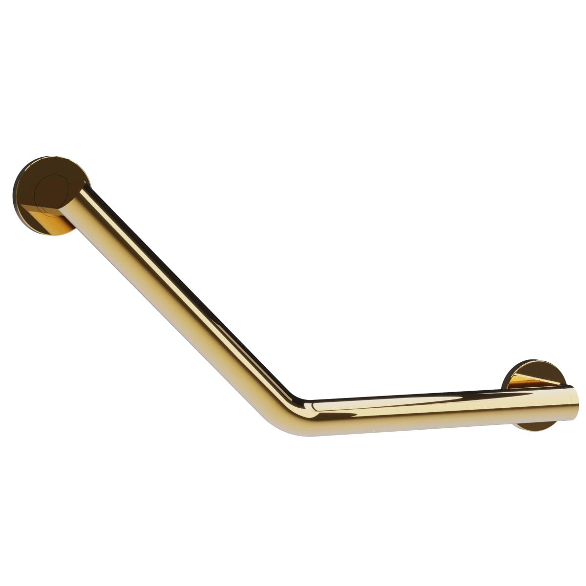 Угловой дизайнерский поручень с двумя точками опоры выполнен из нержавеющей стали с PVD покрытием золотого цвета. Поручень идеально подойдет для комплектации практически любого санузла благодаря его надежности и прочности. Внешний вид и варианты отделки позволяют использовать его в различных интерьерах.