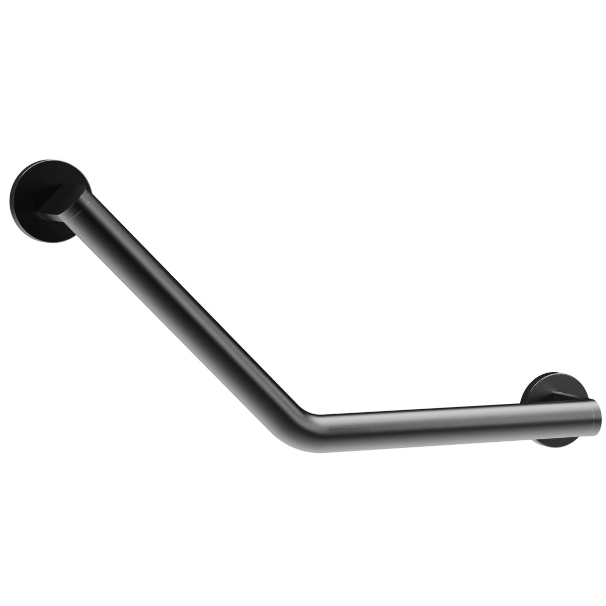 Угловой дизайнерский поручень с двумя точками опоры выполнен из нержавеющей стали с PVD покрытием в цвете графит. Поручень идеально подойдет для комплектации практически любого санузла благодаря его надежности и прочности. Внешний вид и варианты отделки позволяют использовать его в различных интерьерах.