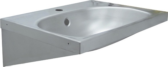 Раковина антивандальная из нержавеющей с 2 отверстиями, одно из которых предназанчено для установки смесителя, а второе от перелива