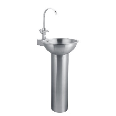 Умывальник с пьедесталом и круглой выполнен из нержавеющей стали матовой. Смотрится очень стильно и имеет 2 отверстия, одно из которых предназначено для установки смесителя, а второе от перелива