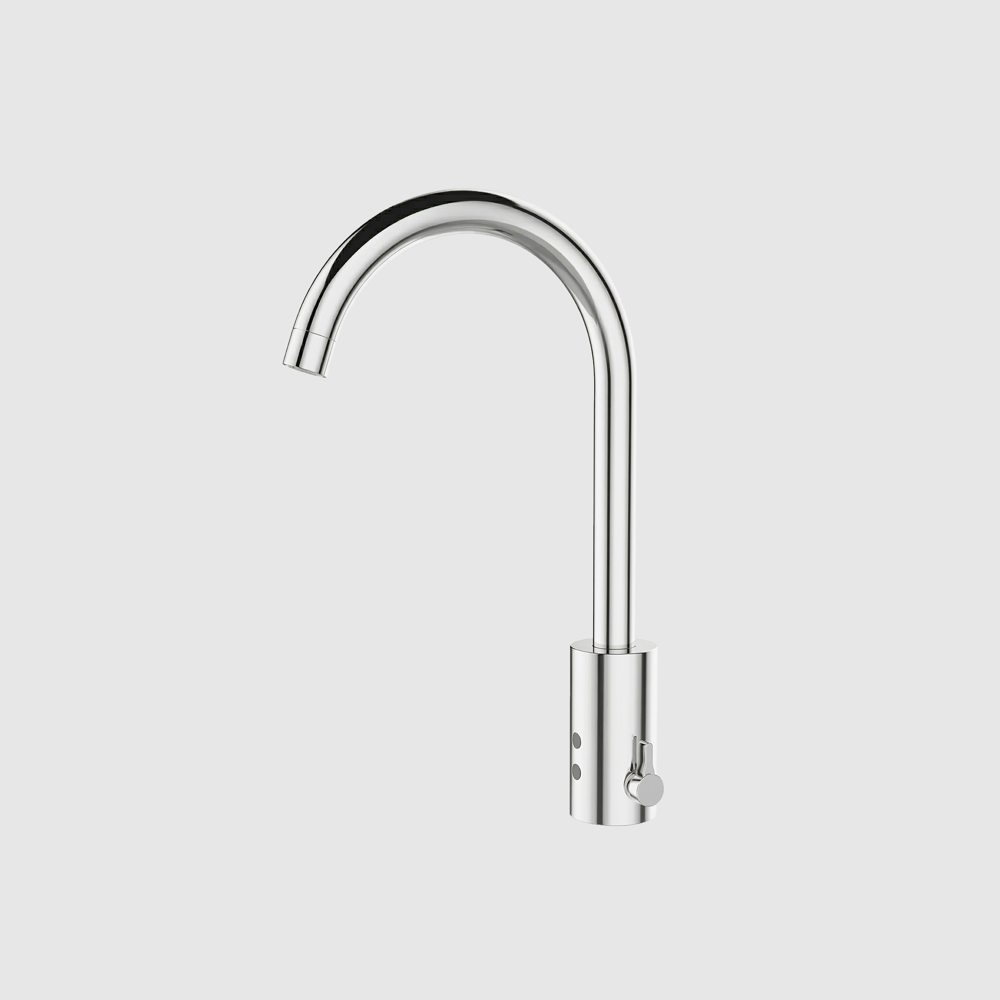 Автоматический водопроводный кран для умывальника. Установка на столешницу с автоматической системой активации через встроенный в нее инфракрасный датчик. Дальность обнаружения от 12 до 18 см.