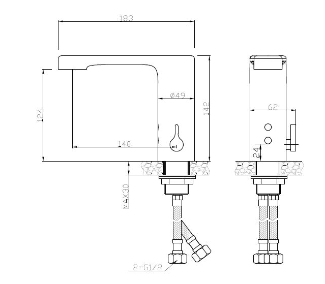 Автоматический смеситель для умывальника Установка на столешницу с автоматической системой активации через встроенный в нее инфракрасный датчик Работа от сети 220 В 50/60 Гц или от 4 батареек АА, обеспечивающих 6 В в случае сбоя питания. Расход 6 л / мин при давлении 3 бара Материал: хромированная латунь CW617N.