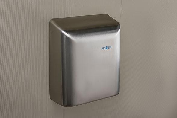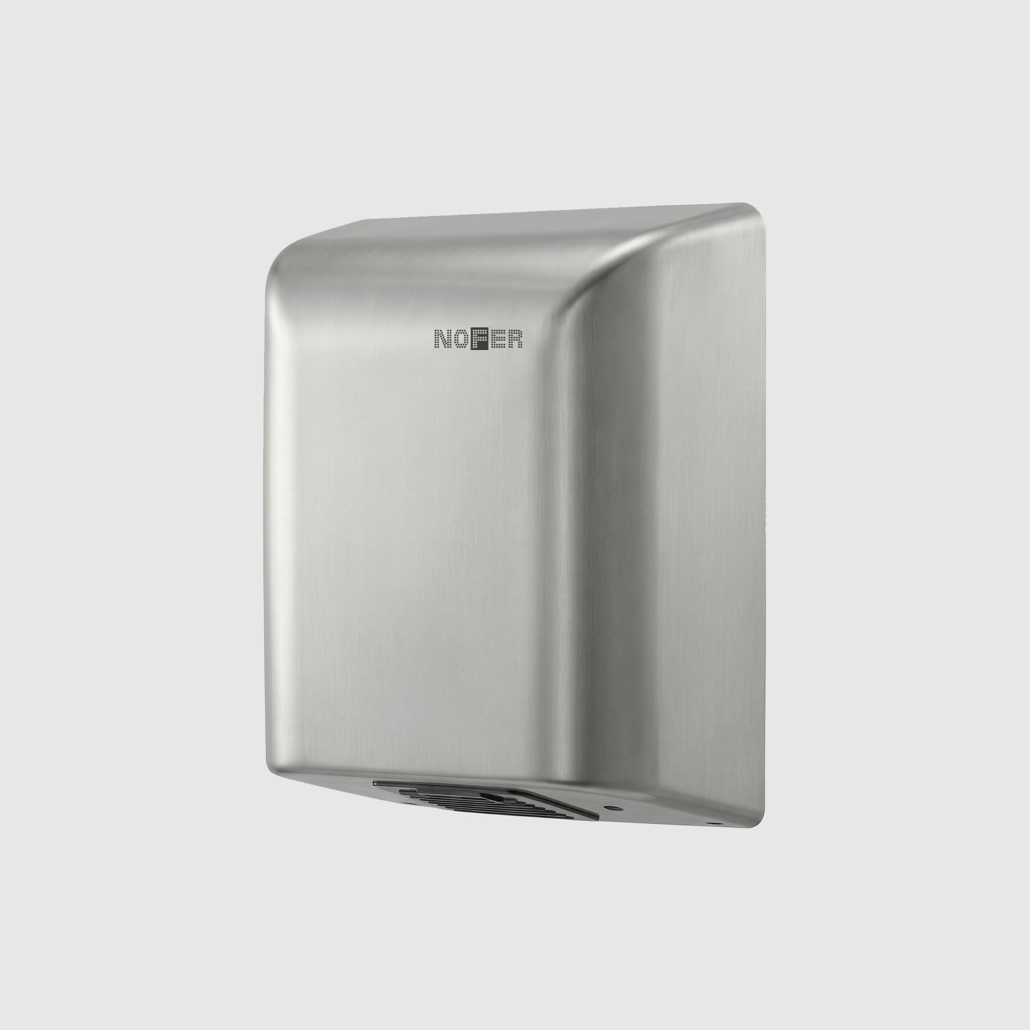 Сушилка для рук NOFER с корпусом из матовой нержавеющей стали AISI 304, активируется электронным датчиком, мощностью 2050 Вт и температурой 60ºC.