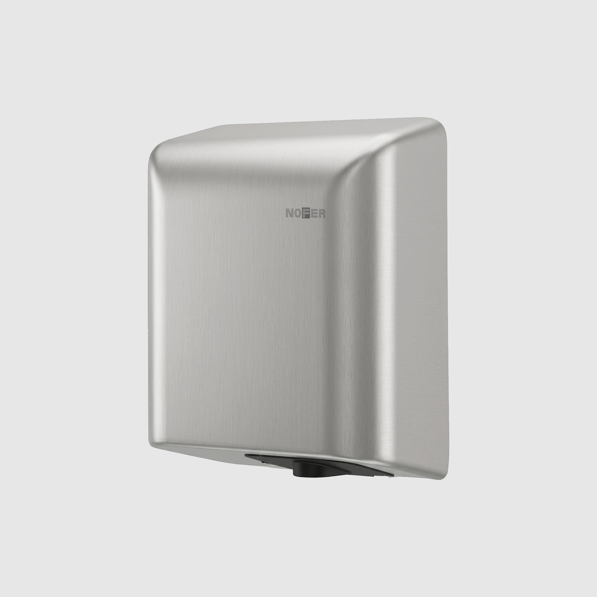 Высокоскоростная сушилка для рук FUGA имеет двигатель, работающий на высоких оборотах, максимальное значение которых доходит до 35000 об/мин. Время сушки рук составляет 8-12 сек. Скоростная сушилка идеально подойдет для мест с большой проходимостью. У данной модели отсутствует нагревательный элемент и установлен достаточно мощный двигатель. Автоматическая сушилка оснащена инфракрасным сенсором,он срабатывает на расстоянии от 10 до 50 см. Так же имеет прочный антивандальный корпус из нержавеющей стали, без острых углов. Nofer FUGA имеет степень защиты IP X1.