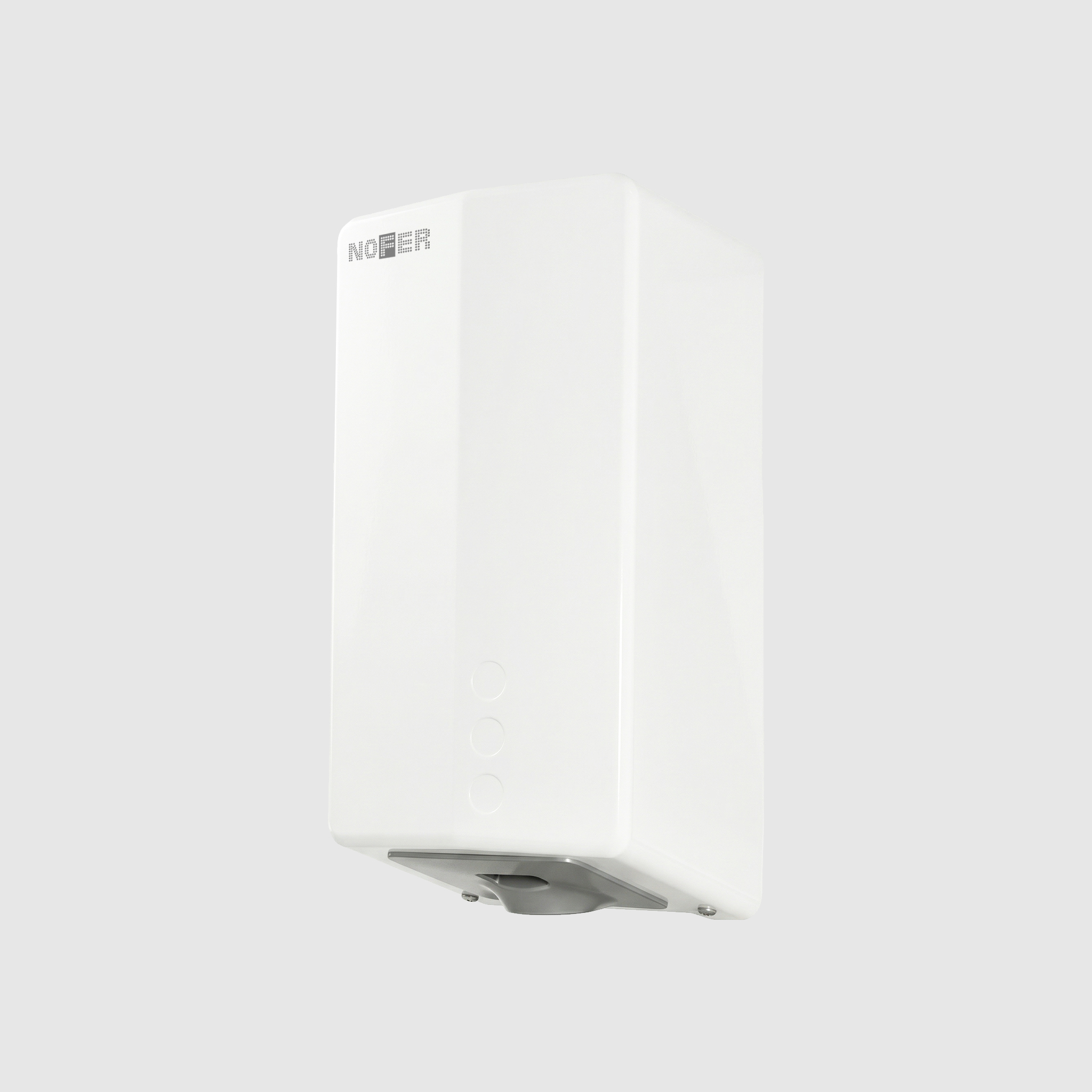 Высокоскоростная сушилка для рук FUGA EVO имеет двигатель, работающий на высоких оборотах, максимальное значение которых доходит до 35000 об/мин. Время сушки рук составляет 8-12 сек. Скоростная сушилка идеально подойдет для мест с большой проходимостью. У данной модели отсутствует нагревательный элемент и установлен достаточно мощный двигатель. Автоматическая сушилка оснащена инфракрасным сенсором,он срабатывает на расстоянии от 10 до 50 см. Так же имеет прочный корпус из ABS-пластика, без острых углов. Nofer FUGA EVO имеет степень защиты IP X1.