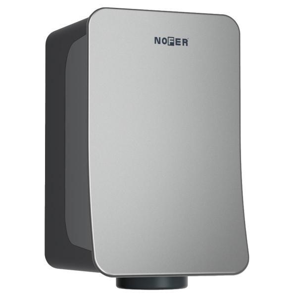 Сушилка для рук NOFER FUSION работает от лазерного датчика, мощность 900 Вт или 700 Вт. Скорость вращения двигателя 30000 об/мин.