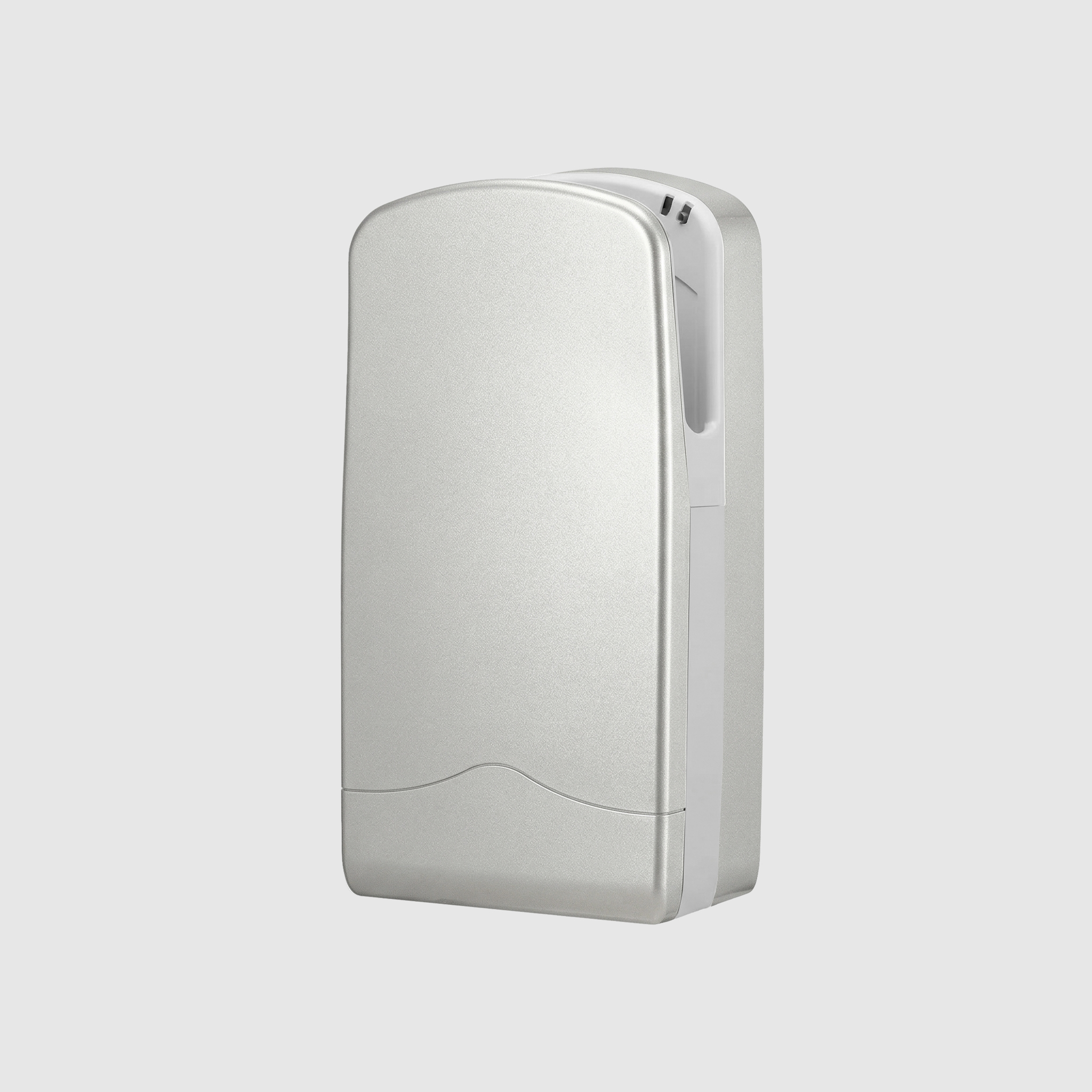 Nofer V-jet - одна из самых инновационных и высокотехнологичных сушилок для рук из ассортимента испанского производителя. Она оборудована двумя мощными двигателями по 780 W каждый, без нагревательного элемента. Это позволит вам высушить руки всего за 6-10 секунд!  Вертикальная сушилка для рук V-jet оснащена антибактериальной защитой внутренней поверхности сушилки, которая была одобрена независимой американской лабораторией Microban. В пластике устройства имеются специальные присадки, которые эффективно борются с микробами и бактериями и убивают до 99,7% всех известных вредоносных частиц.
