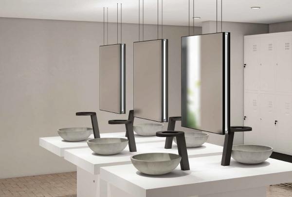 Комплект для установки на столешницу или раковину состоит из сушилки для рук, дозатора мыла и крана с активируемыми лазерными датчиками с регулируемой чувствительностью.