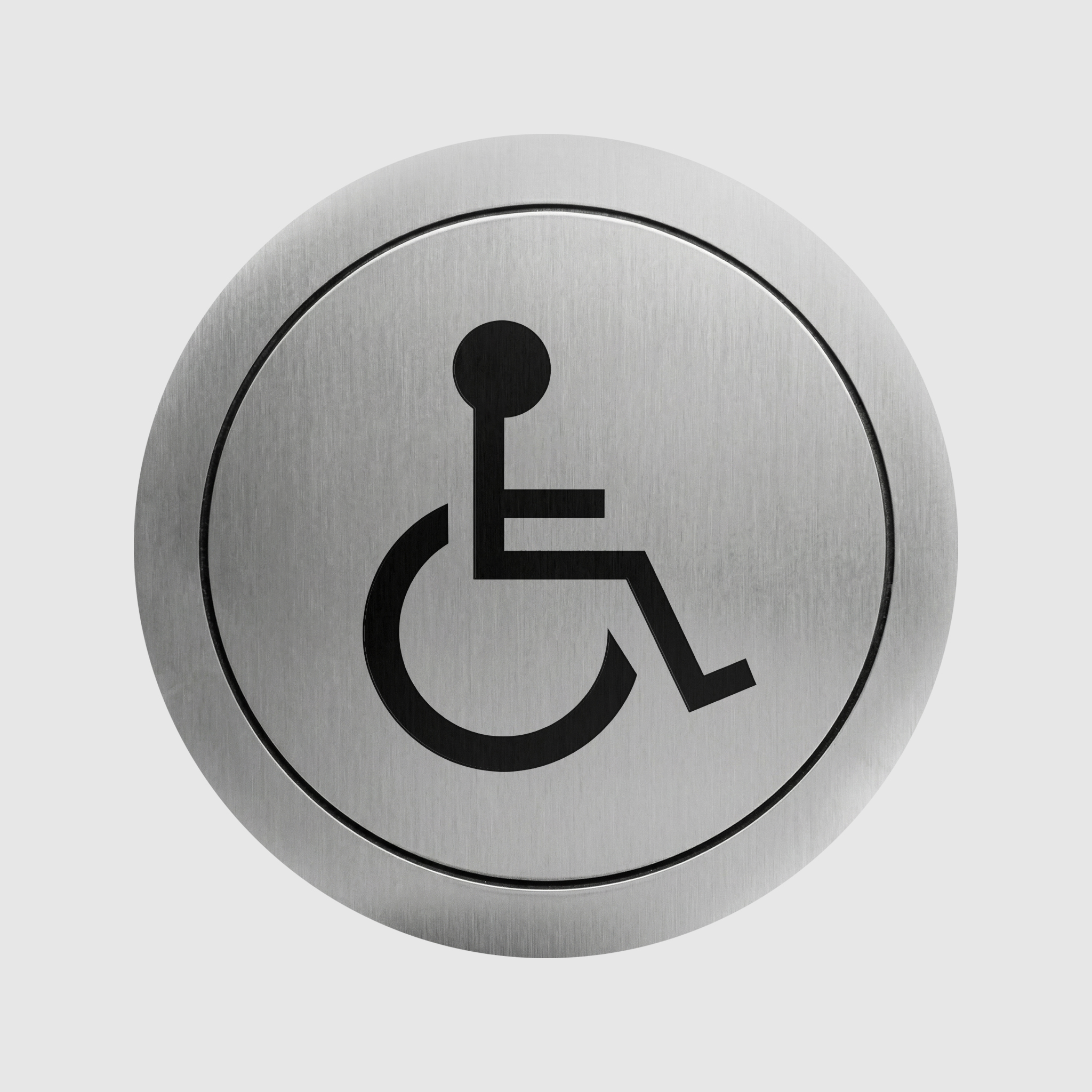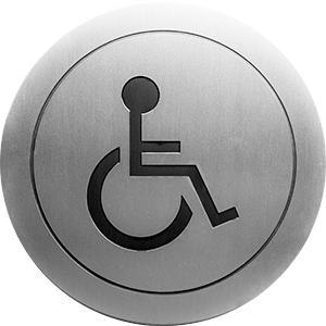 Указатель на дверь санузла для инвалидов выполнен из нержавеющей стали AISI 304.
