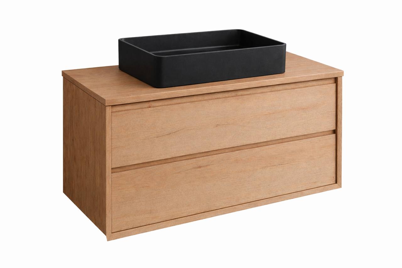 Тумба под раковину COOL с 2 выдвижными ящиками 80x45x54 CL.080.MUD орех+Столешница накладная на тумбу для раковины-чаши FLAT 81x46 EP081.M орех+Раковина накладная прямоугольная 470x360x110 мм QTRO47 23582 матовый чёрный