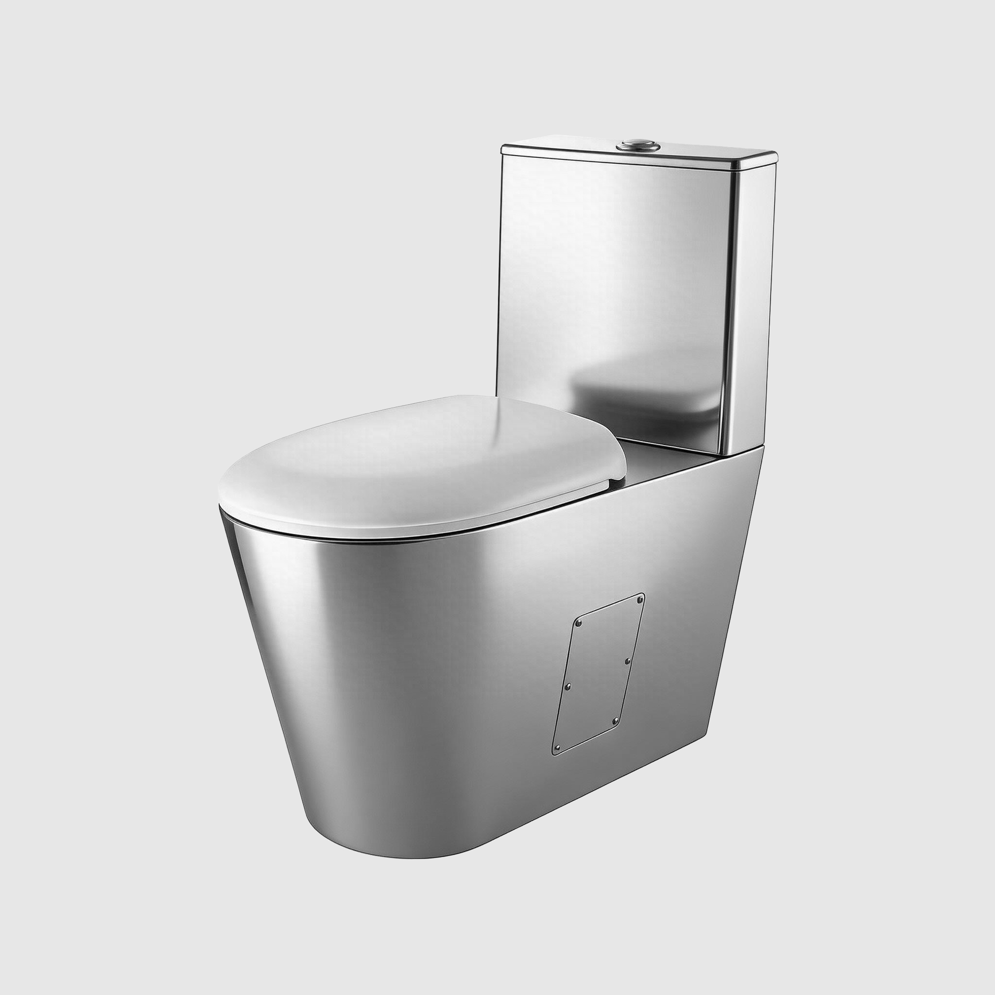 Напольный унитаз из нержавеющей стали со сливным баком выполнен из нержавеющей стали без острых углов. Предназначен для мест с большой проходимостью или для мест где требуется повышенное внимание к прочности и качеству оборудованию санузлов. Сиденье из ПВХ уже в комплекте. При изготовлении данного унитаза используется нержавеющая сталь особого сорта AISI 304, что увеличвает срок его службы в несколько раз!