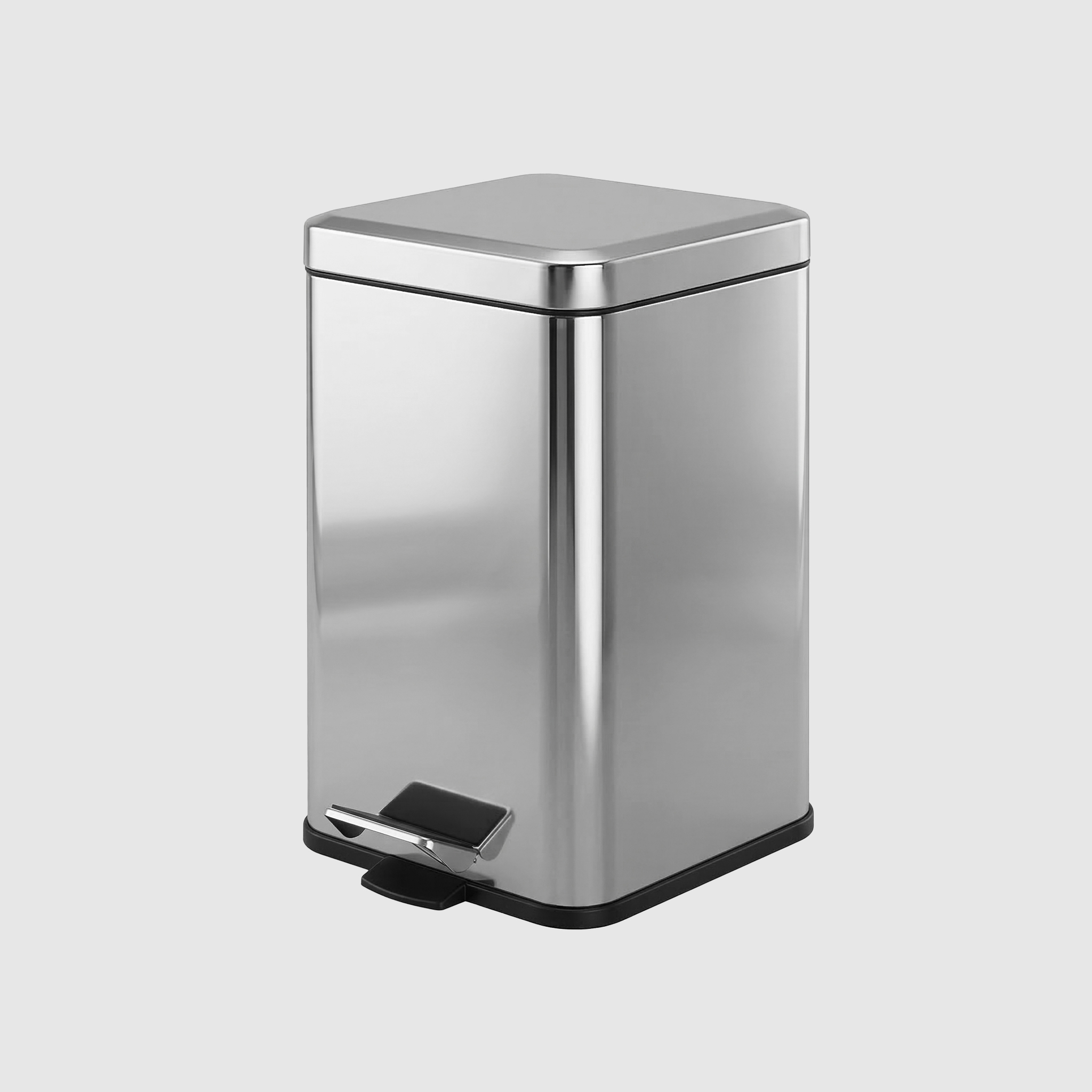 Контейнер для мусора с педалью среднего объема на 12 литров имеет корпус из нержавеющей стали AISI 304 глянцевого оттенка, а также внутренний бак, для удобства пользователя. Ведро оснащено педалью, с помощью которой открывается крышка и приподнимается внутренний контейнер. Форма ведра прямоугольная.