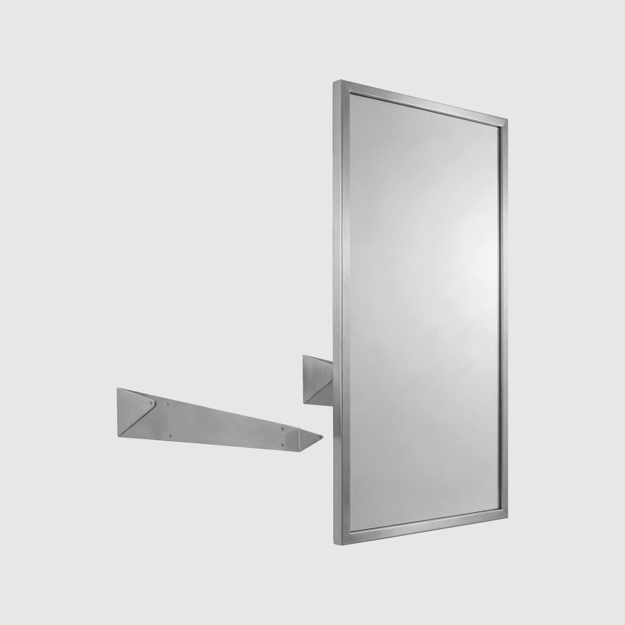 Антивандальное зеркало с рамкой из нержавеющей стали имеет возможность регулировки угла наклона в пределах 10 градусов.