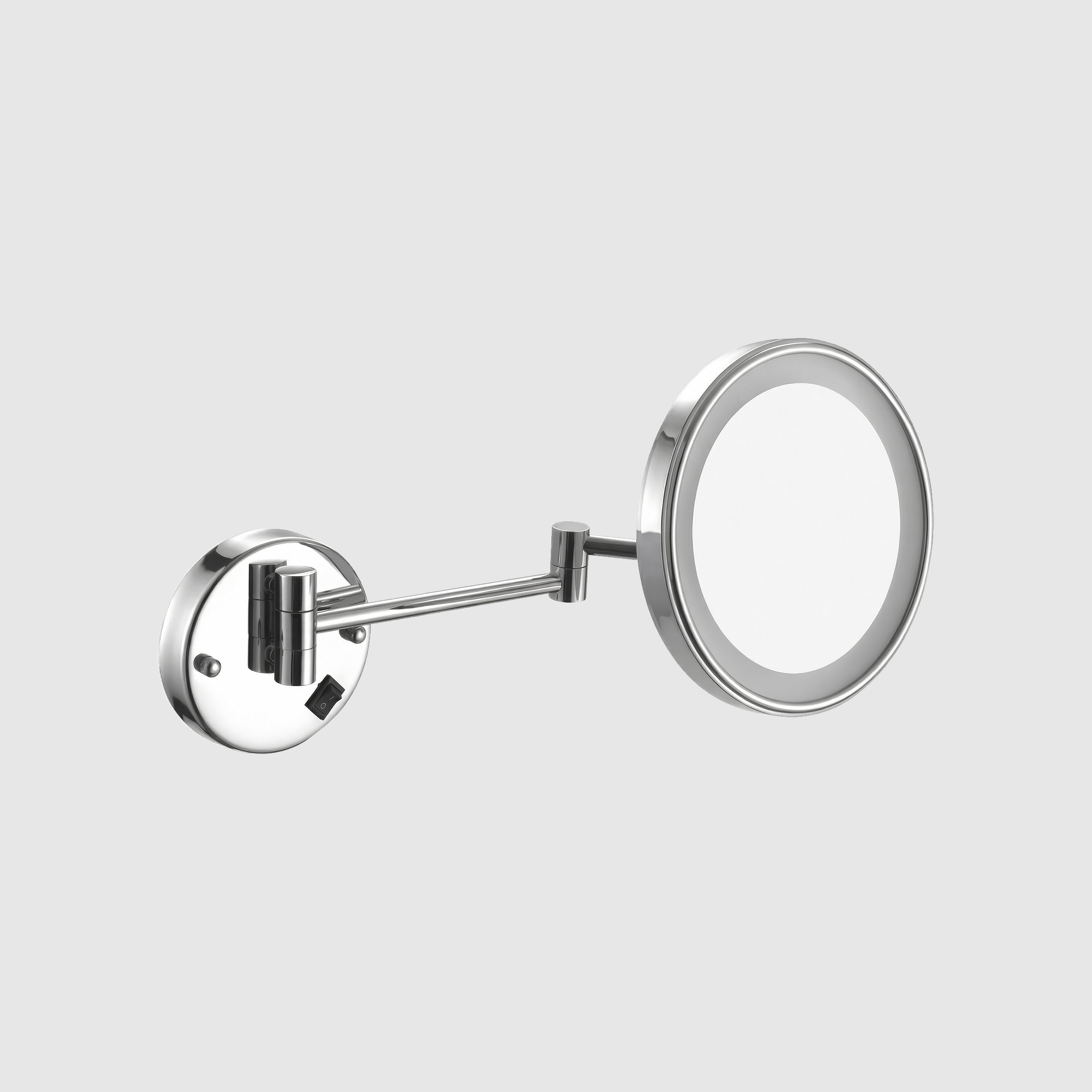 Круглое зеркало NOFER с выдвижным кронштейном из хромированной латуни и нержавеющей стали для настенного монтажа.